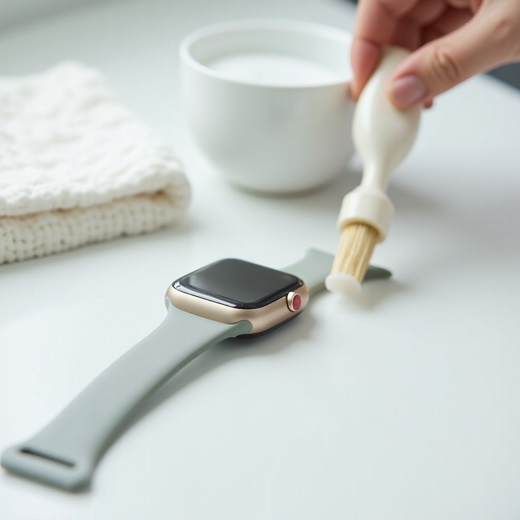 - Gently scrub the silicone band, paying extra attention to the edges and any textured areas.